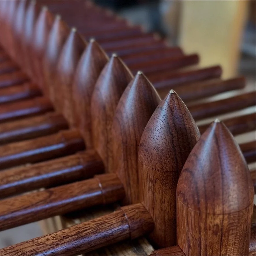 New for fall of 2025, I’m offering reamers in dense tropical hardwoods. This is a significant upgrade in wear resistance and rigidity from the standard reamers that I make in hard maple. The most recent batch is made from Bubinga as I continue the search for a wood species that strikes a balance between ethical and consistent supply, density, stiffness, cost, and workability. I’m really pleased with how this batch of reamers in bubinga have turned out. Most of the blanks have nice dark “ink lines” in the wood and the texture of the wood reminded me of working with rosewood, but with more density than the East Indian Rosewood that I made a few reamers out of in the past.